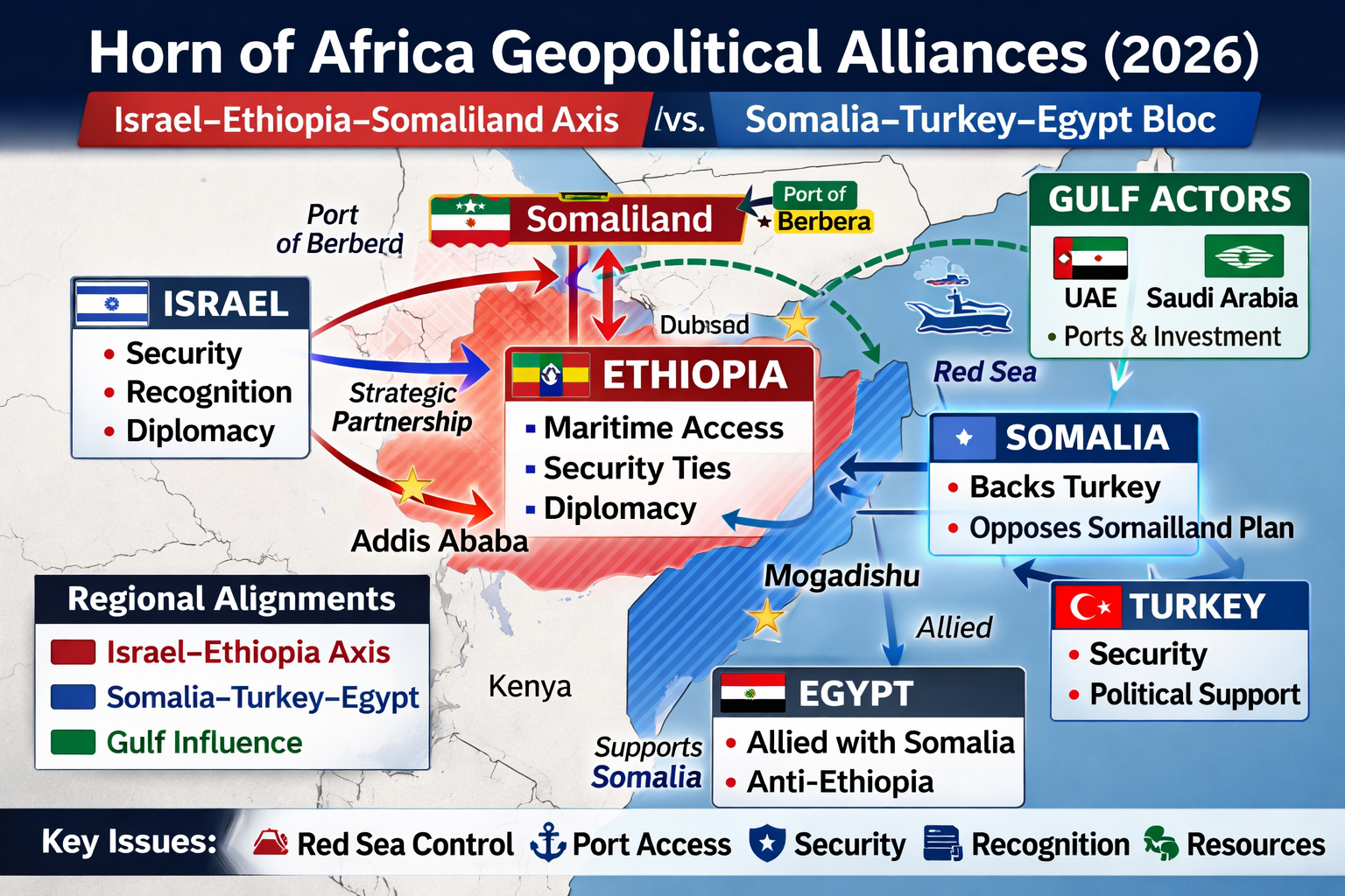 3. Regional tensions triggered by Israel’s recognition of Somaliland, which has reshaped alignments among Somalia, Ethiopia, Turkey, Egypt, and Gulf actors.